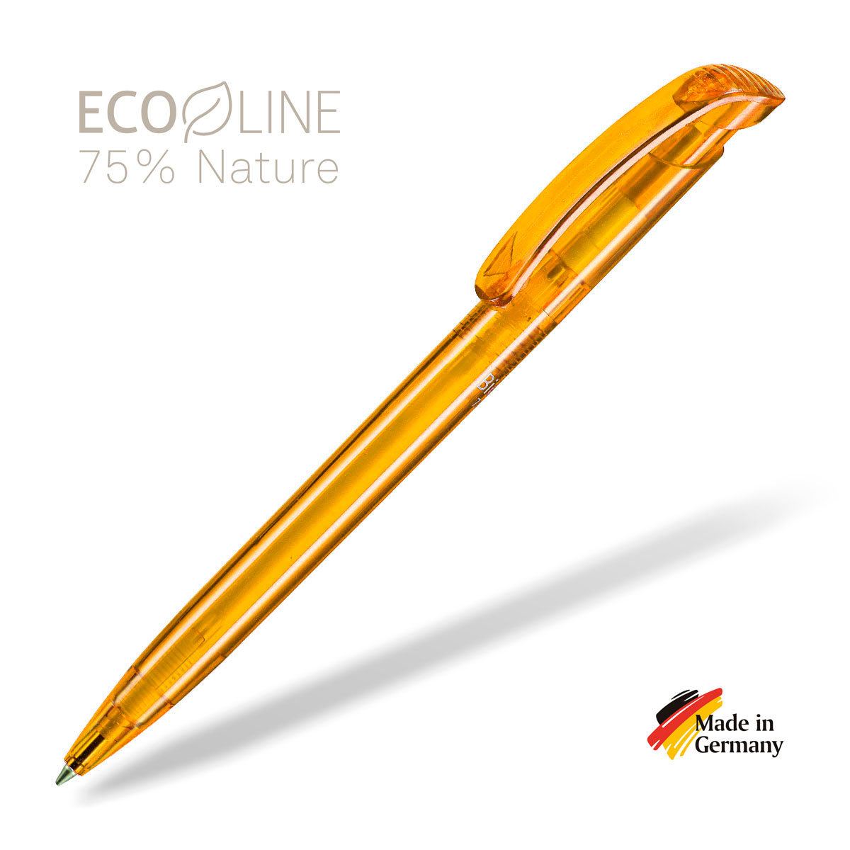 Jetzt ist es möglich: Werbekugelschreiber nachhaltig produzieren, gut aussehen lassen und preisgünstig mit Druck anzubieten. Gehäuseschaft und Blip des Kugelschreibers BIO-CLEAR bestehen aus aus nachwachsendem, biobasiertem Werkstoff Celluloseacetat. Das Schaftoberteil ist weiterhin aus ABS-Kunststoff. Das glänzende Material, die ansprechenden Farben und das Design machen diesen Kugelschreiber zu einem idealen Werbeartikel mit Mehrwert. Die blauschreibende Marathon-Mine ist für 2.500 m Schreibleistung ausgelegt und wird nach ISO 12757-2 produziert.