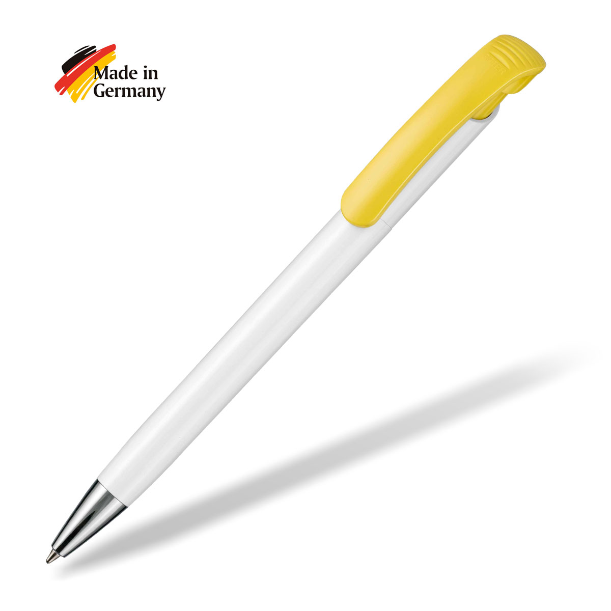 Der Kugelschreiber Bonita ist ein sehr schöner „Allrounder“ aus dem Hause Ritter-Pen. Und natürlich Made in Germany. Die große Druckfläche am Schaft lässt viel Platz für Motive aller Art, die durch die glänzende weiße Fläche auch sehr gut wirken. Nutzen Sie unseren Pen Builder und gestalten Sie sich Ihren Werbekugelschreiber selbst oder schicken Sie uns Ihre Grafik, dann erhalten Sie von uns ein Layout zur Freigabe – natürlich kostenlos.