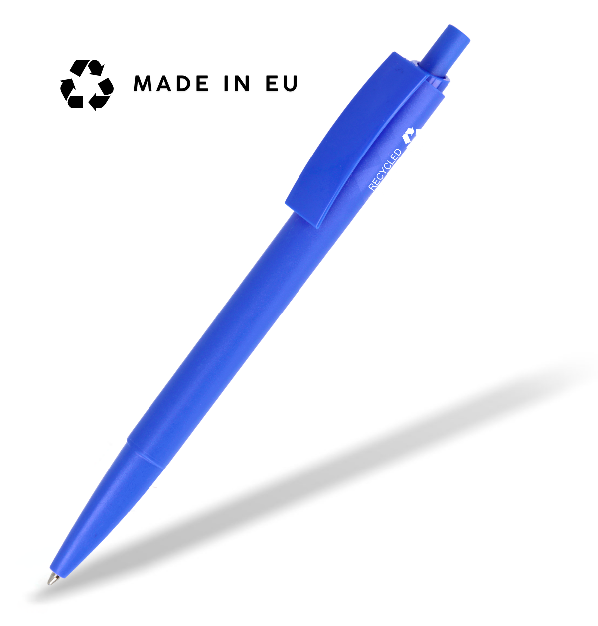 *Alle sichtbaren Gehäuseteile dieses Kugelschreibers sind aus 100% Recyclingmaterial gewonnen. Um homogene Farbtöne zu erzielen werden dem Material ca. 6% nichtrecycelte Standardpigmente zugesetzt. Mine Feder und Mechanik sind aus Standardmaterial.