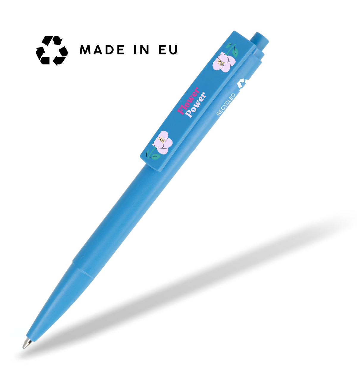 *Der Kugelschreiber mit allen Bestandteilen ist zu 86,6% aus Pre-Consumer-Recycling-Material gewonnen. Um homogene Farbtöne der farbigen Gehäuseteile zu erzielen werden dem Material nichtrecycelte Standardpigmente zugesetzt. Mine, Feder und Mechanik sind aus Standardmaterial.