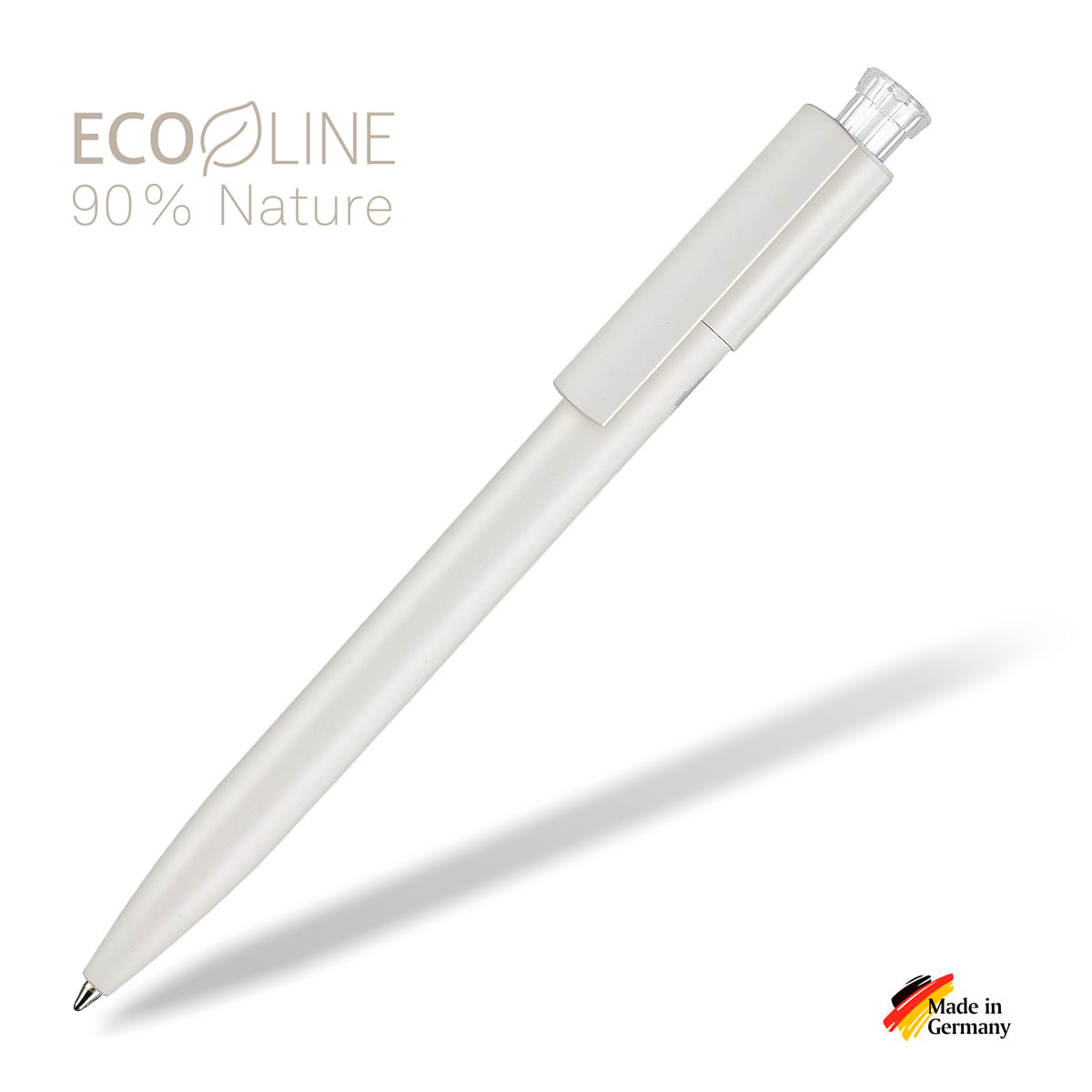 Der ORGANIC Kugelschreiber, ein Werbeartikel aus unserer ECO-Line von Ritter Pen. Gute Kugelschreiber – gut zur Umwelt. Zum effektiven Promotion-Artikel wird der Kugelschreiber mit Druck und kommuniziert somit auch die Verantwortung, die Sie für unsere Umwelt übernehmen. Nachhaltigkeit mit einem Material aus 90 % nachwachsenden, biologisch abbaubaren Werkstoffen – trotzdem bleibt er ein günstiger Werbekugelschreiber.