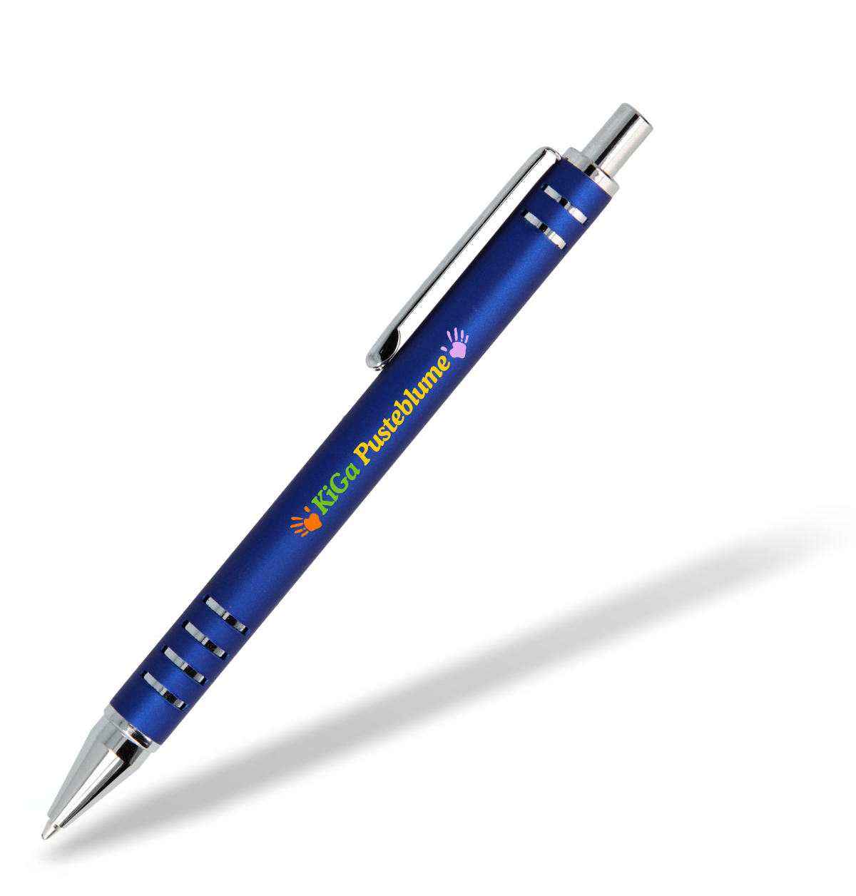 Der blaue Kugelschreiber passt farblich genau zu unserer Corporate Identity-Farbe! Er lässt sich sehr angenehm schreiben und sieht zudem noch besonders formschön aus. Auch der Druck unseres Logos wirkt in silber sehr edel!