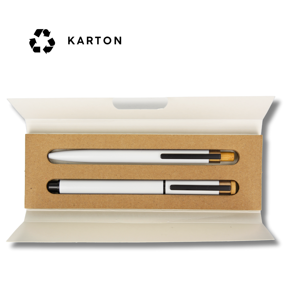 Geliefert wird das Schreibset in einer farblich passenden Geschenkbox aus Recycling-Karton, die das nachhaltige Gesamtkonzept abrundet und das Set perfekt als Geschenk oder Werbeartikel macht.