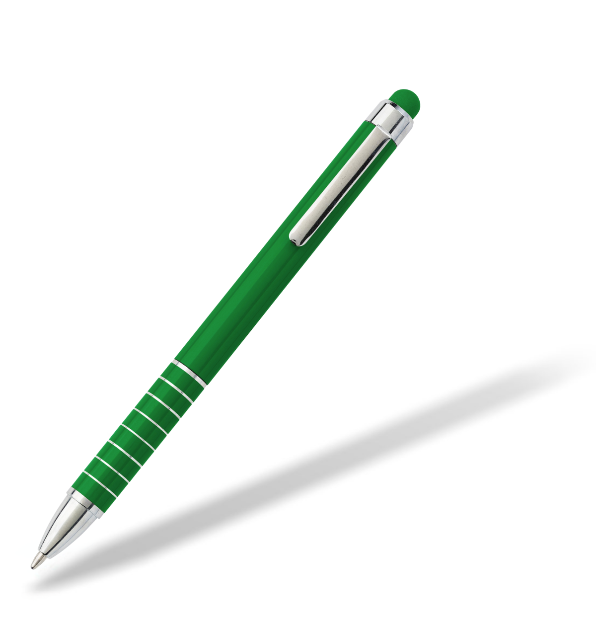 Der Metallkugelschreiber SPEEDTOUCH, wirbt mit seiner schlichten Eleganz in vielen möglichen Farben. Der Touch-Pen oben am Druckknopf, ist passend in der jeweiligen Gehäusefarbe. Der Clip ist aus Metall. Mit seinen Maßen ist er im Vergleich zu anderen Kugelschreibern zierlich und schlank. Die feinen Ringe im Griffbereich verleihen ihm Wertigkeit. bedrucken den Kugelschreiber oder gravieren ihn am Gehäuse mit Ihrer Werbebotschaft.