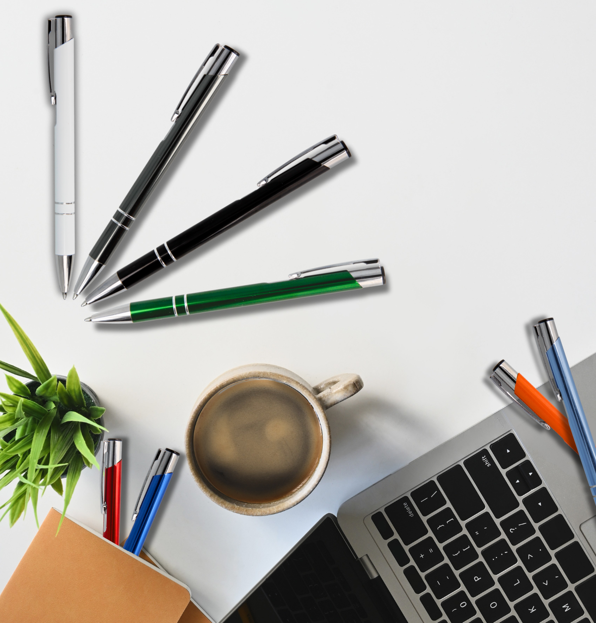Entdecken Sie unseren Topseller TERAX – den attraktiven Metallkugelschreiber als preiswerter Werbeartikel für Ihr Unternehmen. Als Kugelschreiber mit Gravur lässt sich das Modell TERAX auf zwei Flächen gravieren und so Ihre Firmenpräsenz individuell in Szene setzen. Alternativ verleihen Sie Ihrem Logo mehr Sichtbarkeit durch eine passende Druckfarbe, mehrfarbig oder einfarbig. Ganz gleich, welche Veredelungsvariante Sie wählen: TERAX strahlt Firmenpräsenz auf glänzenden Farben und edlem Design aus.