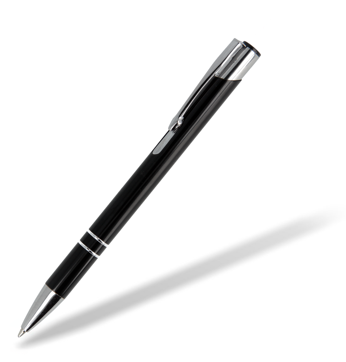 - Hochwertiger Metallkugelschreiber mit zwei Zierringen am Schaft und verchromter Spitze