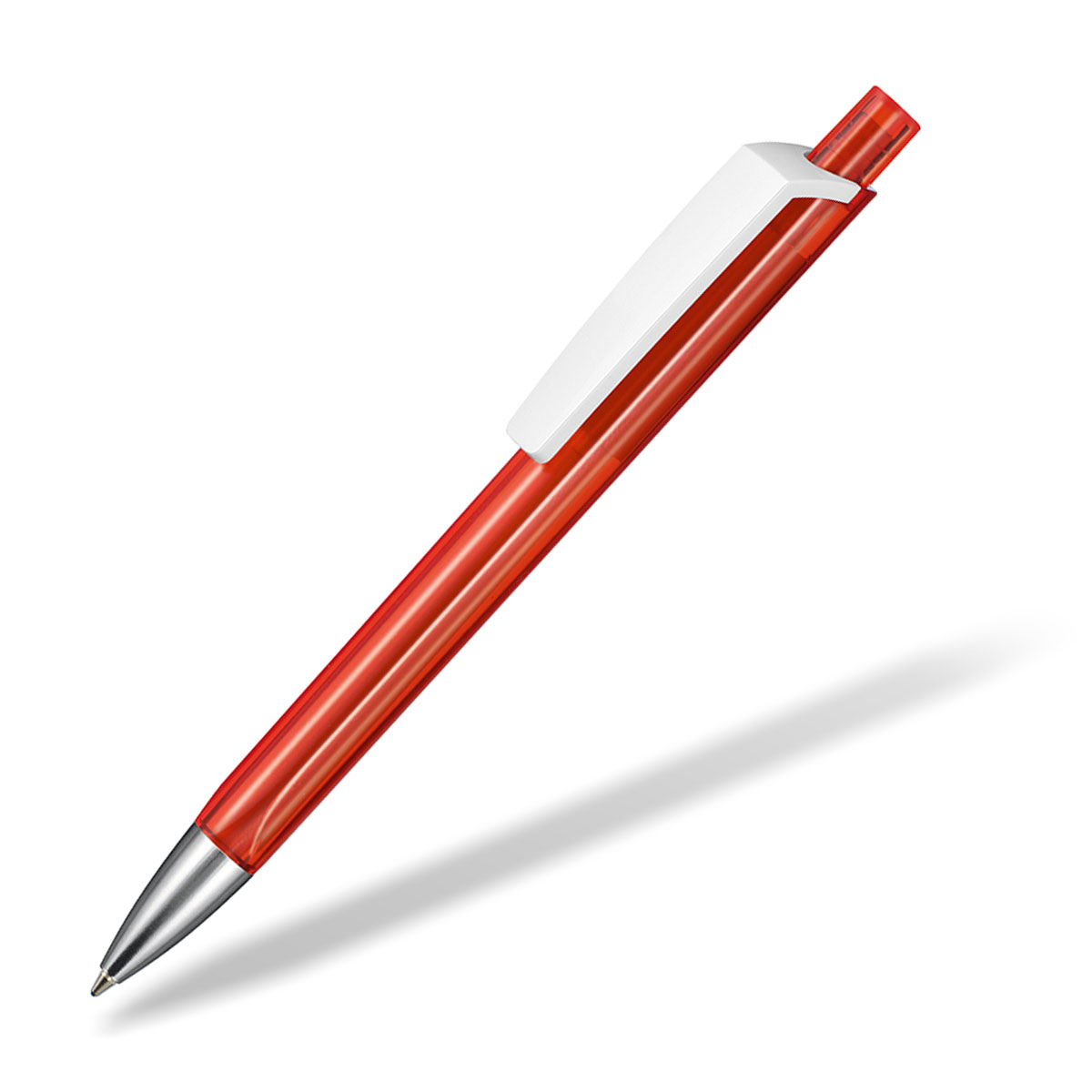 Markenkugelschreiber TRI-STAR von Ritter-Pen. Kultige 3-Kantform in frischen transparenten Farben mit weißem Clip. Liegt ergonomisch sehr gut in der Hand. Großraummine ULTRA blauscheibend. Qualtität Made in Germany mit glänzender Metallspitze. Die Clipfläche eignet sich besonders für Ihr mehrfarbiges Logos. Druck auf einer der 3 Seitenflächen bitte anfragen. Wenn Sie Gehäusefarben anders konfigurieren wollen, bitte HIER KLICKEN.